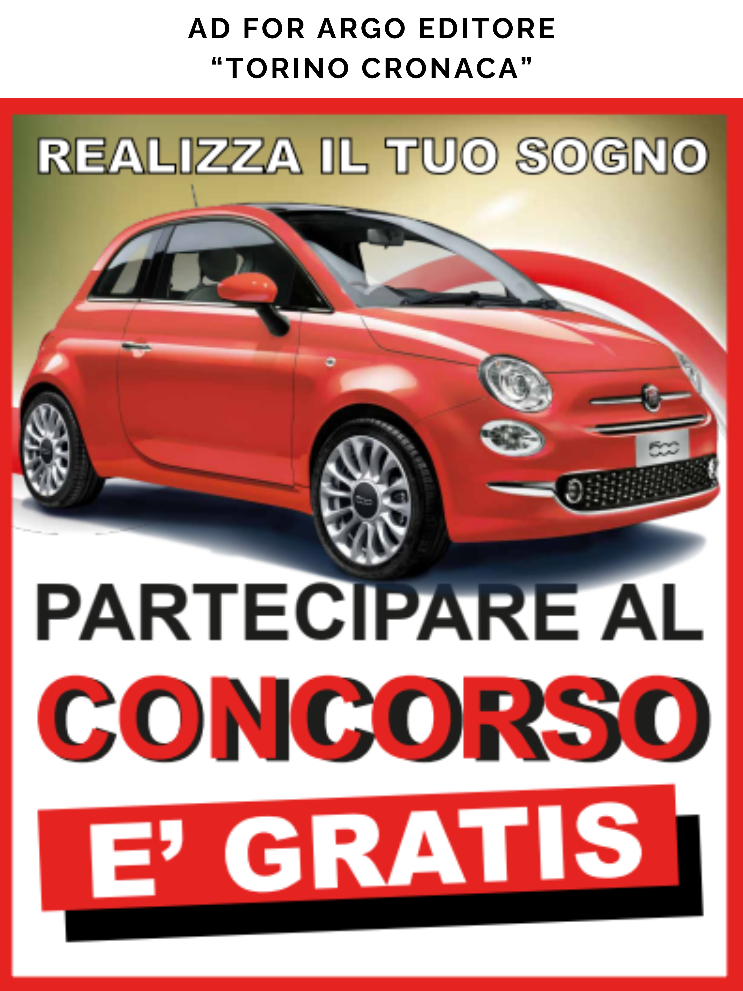 Single-page AD for Torino Cronaca by Argo Editore